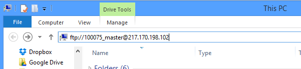 - Fill in the FTP details in the address bar as shown in the screenshot below: