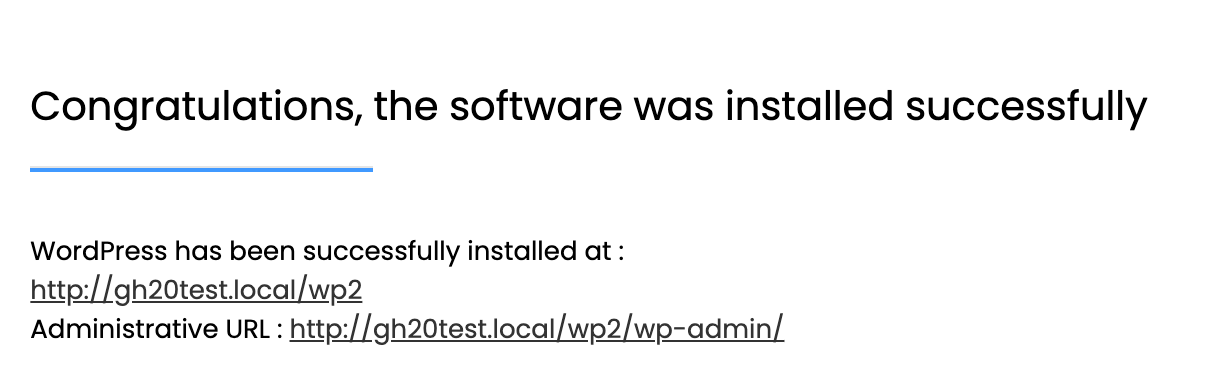 - Noter ned ditt administrative URL og logg inn i Wordpress med ditt brukernavn og passord.