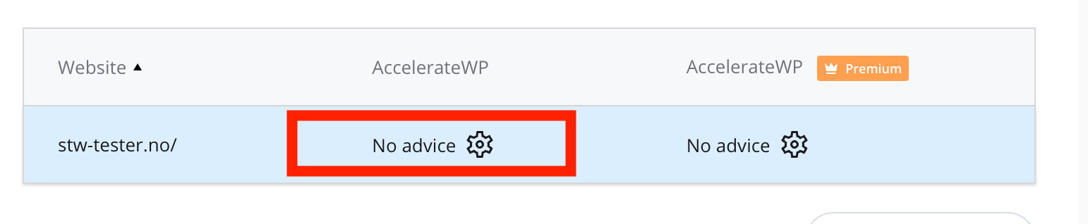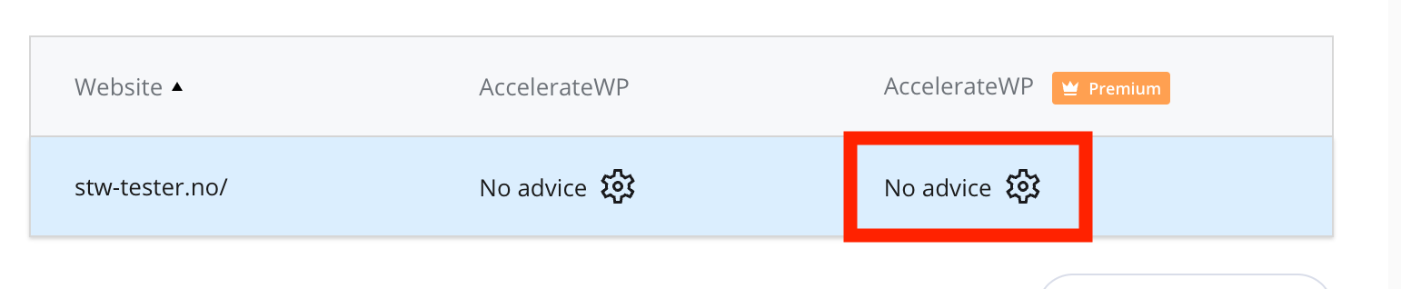 - Klikk på tannhjulet under AccelerateWP PREMIUM