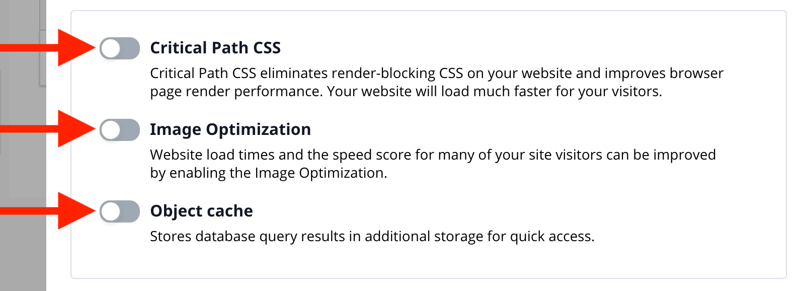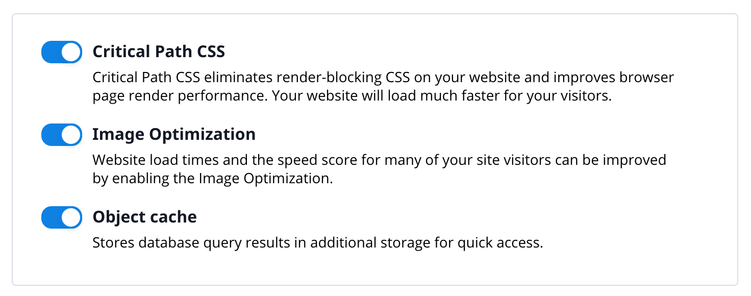 - Aktiver Object Cache, Image Optimization og Critical Path CSS