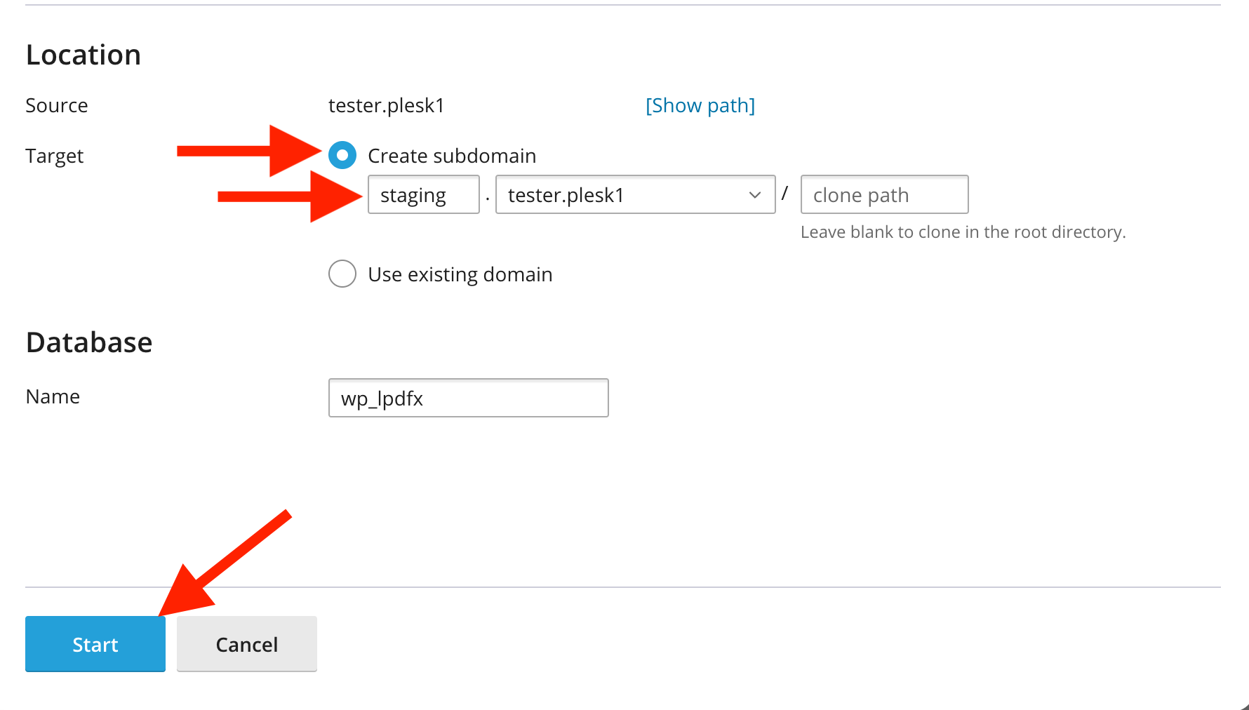 - Om ønskelig kan du endre navnet på subdomenet fra staging til f.eks. test eller til noe annet som du enkelt husker.