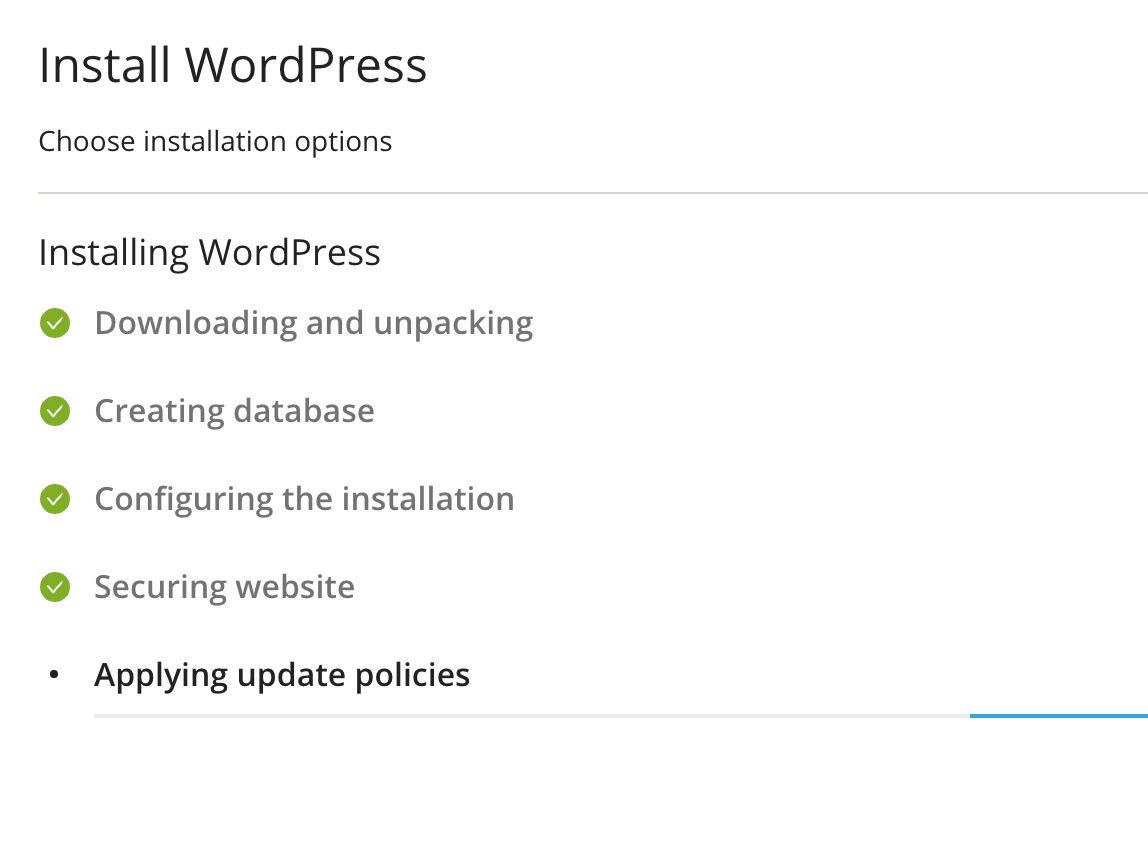 - Wordpress blir nå installert og blir klart for innlogging på f.eks. ditt-domenenavn/wp-admin - (Bytt ut ditt-domenenavn med ditt eget domenenavn)